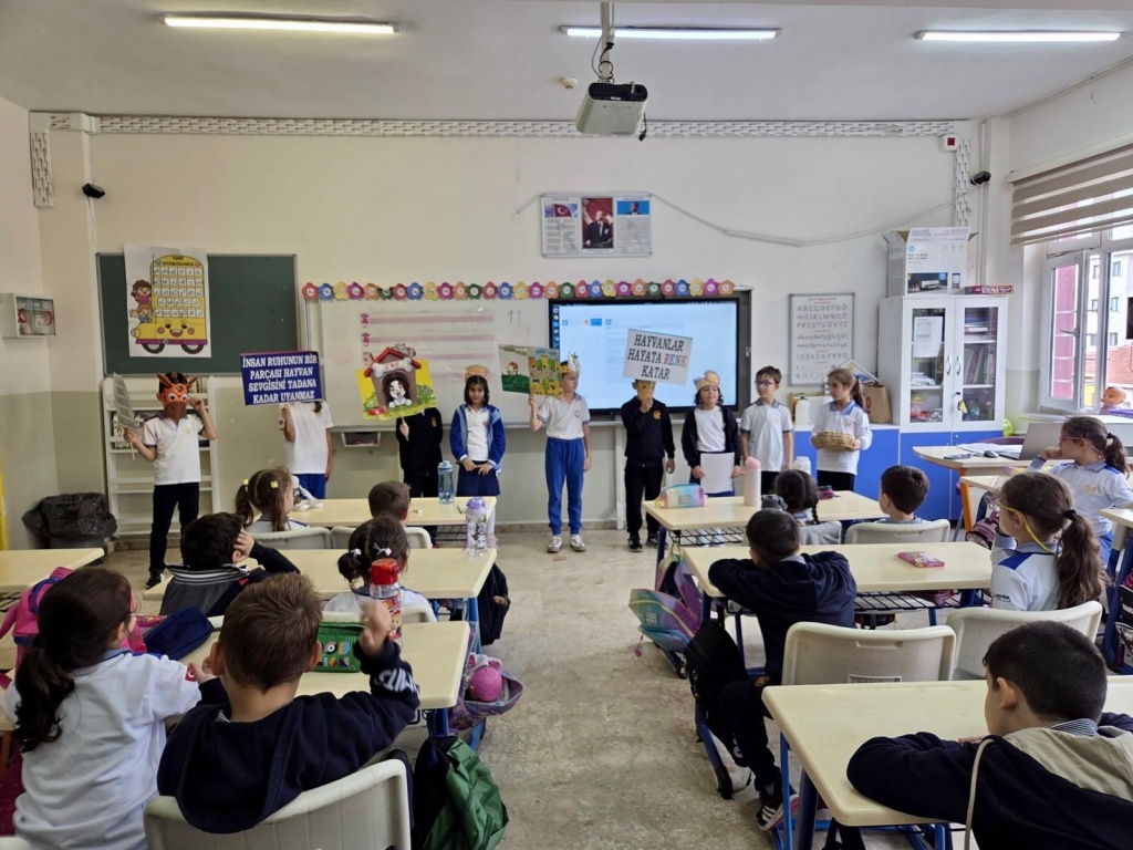 1/C ve 3/F sınıfının sunumu ile 4 Ekim Hayvanları Koruma Günü’nde, hayvanların da yaşam hakkı olduğunu hatırlıyoruz. Onları sevmek, korumak ve zarar vermemek hepimizin görevidir. Hayvanları korumak, doğayı ve geleceğimizi korumaktır